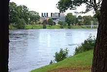 Upstream of Inverness city centre lie the Ness Islands which are popular for nature walks and have many fine tree specimens.[12][13] The river flows through the heart of the City of Inverness, and fishermen in waders can often be seen casting for salmon. The Ness District Salmon Fishery Board is the statutory body responsible for the protection and enhancement of salmon and sea trout fisheries in the Ness District.[14] Common seals and grey seals are often seen, as are grey heron, pipistrelle and Daubenton's bats, house martin, grey wagtail, great black backed gull, herring gull, oystercatcher, mallard, dipper, goosander and other diving birds. At certain times of the year Arctic terns can be seen lining the railings along the river banks and the occasional osprey has been spotted fishing in the river from the Ness Islands. European otter are sometimes spotted. The banks of the river are lined with lime trees.[15]