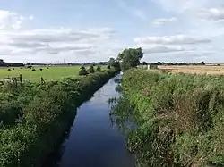 The river rises on the edge of the North Shropshire sandstone plain, but for most of its length, the underlying rock is Bunter Sandstone.[9] A series of streams converge to the east of Gobowen, which have risen further to the west at heights of up to 850 feet (260 m).[10] Initially, the streams are stony-bottomed, but this is soon replaced by clays and alluvial silts. Near Rednal, the flow is augmented by the Tetchill Brook, which starts as an outflow from a large mere at Ellesmere. The outflow was a Victorian solution to control the levels of the mere. It is joined by Newnes Brook, which drains sandstone-based soils between Ellesmere and Gobowen. Below the junction the river crosses Baggy Moor, a large basin which was filled with peat, but which has been extensively drained to enable it to be used for agriculture.[9] Prior to 1777, it was flooded every winter, but an Act of Parliament was then obtained, to authorise the improvement and enclosure of 1,283 acres (519 ha) of land. This was one of the largest areas enclosed in north Shropshire, and although the scheme was more costly and difficult than enclosing some of the dryer areas, the resultant land was more fertile, and so justified the cost.[11]