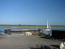 Below Spalding, there were no restrictions on headroom, which allowed small coasters to reach the town. The bridge at Fosdyke was a swing bridge, to comply with the provisions of the Fosdyke Bridge Act of 1870. The demise of such traffic allowed it to be replaced by a fixed bridge with headroom of 16.5 feet (5.0 m), but the powers of the original act had to be rescinded, and the Port of Fosdyke Act was obtained in 1987 to allow this to happen.[76][77] The redundant wharfs at Fosdyke have been developed to provide moorings for yachts and other pleasure craft.[35] The lock at Fulney has three sets of gates, two pointing towards the sea, and a third between them which points upriver. The lock can thus only be used when the level below it is higher than the level above it, and as the tide falls, the intermediate gate closes to prevent its use.[75]