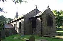The early-16th-century chapel was rebuilt in 1666 and altered and restored in 1861.[13] The church is a small plain building built in sandstone with a bell turret. It is an Anglican church and unusual in that it is not dedicated to a saint or martyr, but referred to as Rivington Church.[81]