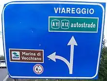 - ↑ Art. 125 - Iscrizioni, lettere e simboli relativi ai segnali di indicazione