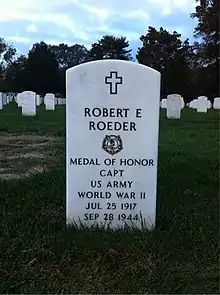 Robert E. Roeder (July 25, 1917 – September 28, 1944) was a captain in the U.S. Army who received the Medal of Honor for his heroic actions during World War II, during which he was killed in action. Roeder is buried in Arlington National Cemetery.