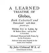 - ↑ WorldCat (OCLC 61335670) suggests that printings of this work were also made in 1639; see also A learned treatise of globes both coelestiall and terrestriall, with their severall uses, by Robert Hues, Open Library, Internet Archive, OL 7015375M, retrieved 10 November 2008. According to Markham, "Introduction", Tractatus de globis, p. xxxix, although the title page of the work states that the translator was "John Chilmead", this is generally believed to be an error as no such person was known to have lived at the time. Instead, the translator is believed to be Edmund Chilmead (1610–1653), a translator, man of letters and music teacher who graduated in 1628 and was a chaplain of Christ Church, Oxford.