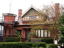 In his own house, "Anselm" at 4 Glenferrie Street Caulfield, Victoria, Australia, built in 1907, Robert Haddon implemented his Art Nouveau ideas with his originality of unconventional architecture. Anselm plays with the hierarchy and scale of Art Nouveau classics such as a dominant octagonal tower, visible chimney stacks and steep pitched roofs that bleed onto the building as decorative façade elements. Haddon treated the building with an open plan living that created a mixture of usable spaces and designed without hallways, which was unusual at the time. The building was a grand gesture that Haddon posed to the community, of his image as an influential architect, teacher and a writer.[7]