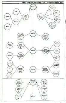 A diagram from Morison's 1672 book on Umbelliferae illustrating genus affinities