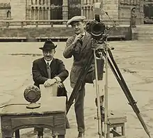 Newhard (right) on the set of The Hunchback of Notre Dame with director Wallace Worsley in 1923