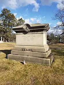 His wartime injuries contributed to his declining health, and Tyler died in Boston, Massachusetts, at the age of 42. He is buried in Cedar Hill Cemetery in Hartford.[2] Before he died, he was able to complete his autobiography, the Memoir of Brevet Major-General Robert Ogden Tyler (Philadelphia: J.B. Lippincott, 1878).