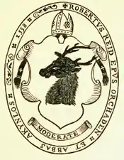 Robert Reid (died 1558) was Abbot of Kinloss, Commendator-prior of Beauly, and Bishop of Orkney. He was born at Aikenhead in Clackmannan parish, the son of John Reid (killed at the Battle of Flodden) and Elizabeth Schanwell. His formal education began in 1511 at St Salvator's College in St Andrews University under the supervision of his uncle, Robert Schanwell, dean of the faculty of arts. Reid graduated in 1515 and by 1524 was subdean at Elgin Cathedral where, by 1527, he was Official[note 1] of Moray. Thomas Chrystall, the abbot of Kinloss, chose Reid as his successor in 1526. In 1527, as abbot-designate, he attended the court of Pope Clement VII on abbacy business. While returning via Paris in 1528, Reid met the Piedmontese humanist scholar Giovanni Ferrerio who accompanied him back to Scotland. Following Chrystall's resignation in July 1528, Reid was blessed as abbot in September and received the Priory of Beauly, in commendam, in 1531. In that same year, Ferrerio left the court of James V to join Reid at Kinloss as tutor to the monks of both Kinloss and Beauly. Reid held many offices of state between 1532 and 1542 including ambassadorial roles to England and France and as a senior law official. He considerably improved the external and internal fabric of both monasteries in 1538.