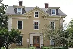 The Robert S. Davis House is located in a residential area between Brookline Village and the town high school, at the southeast corner of Stanton and Greenough Streets. It is a 2+1⁄2-story wood-frame house, three bays wide, with a side-gable roof, twin interior chimneys, and a cupola. It has well-preserved Italianate styling, including corner quoins, deep eaves with dentil moulding and paired brackets, heavily capped windows on the first floor, and a central gable on the main facade.[2]
