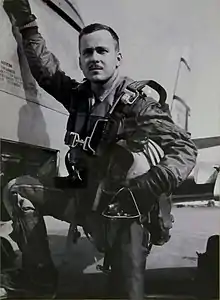![]() Latshaw with his F-86 Sabre in Korea | |