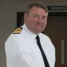 Educated at Cheltenham College, Tarrant joined the Royal Navy in 1979 and saw action in the destroyer HMS Antrim during the Falklands War in 1982.[1] He was promoted to commander on 30 June 1997, and given command of the submarine HMS Talent.[2] After promotion to captain on 30 June 2004,[3] he took command of the patrol ship HMS Endurance in 2007. Promoted to commodore on 27 November 2008,[4] he went on to be Director of Naval Staff in December 2008. He remained the post until August 2011.[1] After attending the Royal College of Defence Studies, he became Commander of Combined Task Force 150, responsible for maritime security from the Red Sea to the Gulf of Oman, in September 2012,[5] and was promoted to rear admiral on 14 January 2013,[6] as he became Commander United Kingdom Maritime Forces as well as fulfilling the role of Operation Commander of the European Union Naval Force Somalia Operation Atalanta.[1] He served as Commander Operations from October 2015 to October 2017.[7] He retired from the Navy on 11 May 2018.[8]