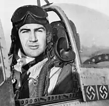 ![]() Whitlow in his P-51 which bears markings from his two aerial kills on November 26, 1944 | |