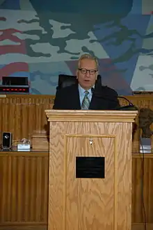 First elected to the Assembly in 1976, Schimminger previously served as a member of the Erie County Legislature for two terms.[1] During his tenure in the Erie County Legislature, he chaired the Public Health Committee.