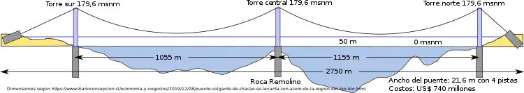 - ↑ Felipe Plascencia, Puente colgante de Chacao se levanta con acero de la Región del Bío Bío, Diario Concepción, 8 de diciembre de 2019.