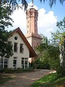 A restaurant has existed on Rochlitzer Berg since 1861,[3] the current restaurant Türmerhaus ("Tower Watchman's House") was newly built in 2002. It can be reached from the parking lot by a short walk uphill.