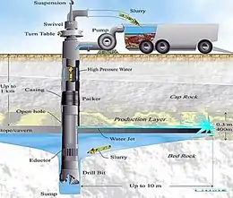 Creating a borehole is a technique that consists of drilling through the ground in various areas at various depths, to get a better understanding of the sites geology.[5] Boreholes must be spaced properly from one another and drilled deep enough to provide accurate information for the geological model.[5] Samples from the borehole are investigated and factors such as rock type, degree of weathering, and types of discontinuities are all recorded. [5]