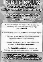 - ↑ Protest march over army closures Inishowen News, 12 November 2008