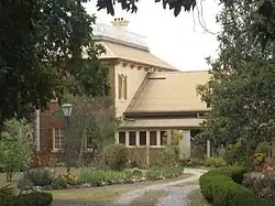 Outbuildings remaining today consist of an early billiard room, a brick outbuilding which was converted into a fernery in the 1930s and new garages built to a design by Buchanan Architects c. 1980. The garden contains very large mature trees including Moreton Bay figs and several limestone walls, as well as formal garden beds.[1]