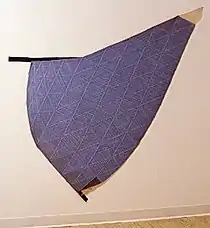 In his early work, this often took the form of what some critics called "irreverent constructions,"[1] such as Martha (1977): painted fields of unstretched canvas that Carswell cut into geometric sail-like forms and attached directly to walls.[2][6] Although abstract, these works were intended in their scale and positioning close to the floor to suggest a figural presence or "echo" of the viewer.[30] Carswell also engaged the paintings as objects, in terms of their unconventional shapes and thin, minimal presence without stretcher bars. By the late 1970s, influenced by the work of Ron Gorchov, he decided to explore this issue in a more robust way, leading to a breakthrough in his work.[6]