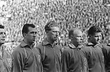 The Netherlands squad lining up before a match against Belgium in 1960. From left to right: Cor van der Hart, Eddy Pieters Graafland, Jan Klaassens, Wiersma and Kees Kuijs.