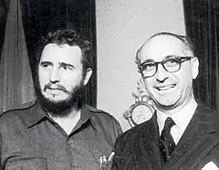 Relegated to informal adviser to the president, Frigerio opposed Alsogaray's belt-tightening measures and increasingly unpopular, Alsogaray's influence quickly waned; in early 1961, he resigned. Again influencing economic policy from his informal role, Frigerio's close working relationship with the president continued until, on March 28, 1962, Arturo Frondizi was deposed while attending a Western Hemisphere summit in Montevideo, Uruguay in hopes of mediating the conflict between the U.S. and Fidel Castro's Cuba.[2] Arrested upon his return to the Casa Rosada the following morning, Frondizi defiantly pronounced that he would "not resign, nor commit suicide, or leave the country," the president was imprisoned and Frigerio, exiled in Uruguay.