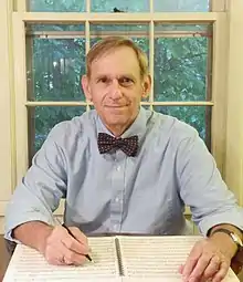 As a composer he has written and published more than 110 works for a variety of ensembles with such firms as the American Composers Alliance, Brixton Publications, Wiltshire Music Company, Hal Leonard Corporation, Jon Ross Music, LLC, and seven other publishers.[7] His music has received favorable reviews in the Journal of Singing,[8] Fanfare (magazine),[9] American Choral Directors Association The Choral Journal,[10] NACWPI JOURNAL,[11] The Saxophone Symposium,[12] and numerous other publications. In addition, he has been an active member of the Southeastern Composers League.