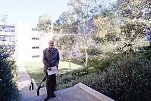 The Nathan campus was planned around a spine road designed for minimum disruption of the natural bush environment. Buildings were situated along the spine running gently downhill to create spaces that were "eddies and pools off the main stream".[9] This concept was inspired by the layout of Italian hillside villages[10] Prematurely, an opportunity arose for him to start the School of Environmental Design in the Canberra College of Advanced Education, now the University of Canberra, as he was appointed Head of School in 1972, to begin in 1973. Johnson remained, however, as consultant planner for the future development of the Nathan campus. The School of Environmental Design adopted a multidisciplinary focus and initially offered courses in architecture, environmental design and industrial design.[11]