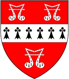 Arms of Meres: Gules, a fess between three water bougets ermine[1]