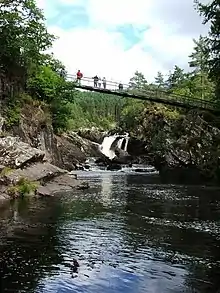 Rogie Falls (Gaelic: Eas Rothagaidh) are a series of waterfalls on the Black Water, a river in Ross-shire in the Highlands of Scotland. The falls are about 2 kilometres (1.2 mi) northwest of the village of Contin, next to the A835 road.[1] They are a popular tourist attraction, with several forest walks.