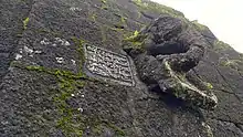 There are three gates on the main entrance path of the fort. The main entrance gate has a Ganesh patti and Miharab. There is a rock cut water cistern near the second gate. The water is available round the year for drinking purpose. There are idols of Lion and Sharabha on the second gate. After climbing 57 steps the third gate is reached. There are idols of heads of elephants on either side and rock cut inscripture in Persian and Marathi on the outer side of the gate. There is a temple of Rohidamalla in good condition on the fort. There are seven Bastions on the fort, they are Shirawale Buruj, Patane buruj, Damugade buruj, Waghjai Buruj, Fatte Buruj and Sadar buruj. In some books presence of Shirja buruj is also mentioned, but its location is unknown.[3] There is a series of rock-cut water cisterns on the southern side of the fort. It takes about an hour to visit all places on the fort.