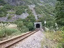 Rokujurigoe Tunnel (六十里越トンネル, Rokujurigoe tonneru) is a tunnel on JR East's Tadami Line that runs through Mt. Asakusa of Echigo Mountains between Tadami Station (只見駅) and Ōshirakawa Station (大白川駅) on the Nigata Prefecture and Fukushima Prefecture borders with total length of 6.359 km. It was built and completed in 1971. [1] [2] [3] [4]