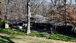 The Roland and Marilyn Wehner House is a historic building located north of Iowa City, Iowa, United States. Local architect Roland Wehner designed this house for his own residence. Its architectural influence are the Usonian houses designed by Frank Lloyd Wright. In particular, Wehner was interested in creating a "modular, affordable, and organic design" for his home.[2] This was his first Wrightian design out of college. The Wehner's bought the 2.33-acre (0.94 ha) property and moved their mobile home here in 1957. Because they had no children and limited funds, the main living pavilion and carport were completed in 1959. As the family grew the bedroom wing was added in 1964. The house is located on a wooded lot in a rural area. It follows an asymmetrical plan that is centered on the two-story living pavilion. The carport juts out to the northwest, the bedroom wing to the southwest, and the cantilevered deck to the east. Most of the windows face the east and south to take advantage of the sun, and to face away from the highway to the west.[2] The exterior is composed of Anamosa Limestone and California Redwood siding. The house was listed on the National Register of Historic Places in 2013.[1]