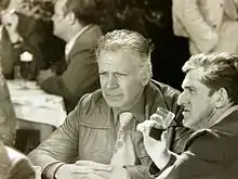 Herricht (back to camera) with Manfred Krug during the filming of Hauptmann Florian von der Mühle. 12 August 1967.