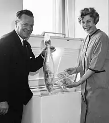 Among the shows he hosted were the children's show Titten Tei and the radio quiz show 20 spørsmål (20 Questions). He was also a commentator for numerous sporting events, like the 1952 Winter Olympics.[2] Rolf Kirkvaag's son, Trond Kirkvaag, was a well-known television comedian. Trond, who died in 2007, wrote a controversial biography of his father shortly before his own death. Here he described Rolf's darker side, and alleged that he had been an emotionally distant and occasionally violent father.[3]
