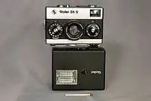 The Rollei 35 is a 35mm miniature viewfinder camera built by Rollei. The original Rollei 35, when introduced at photokina in 1966, was the smallest existing 135 film camera. The Rollei 35 series remains one of the smallest 35 mm cameras after the Minox 35 and Minolta TC-1. In 30 years, about 2 million Rollei 35 series cameras were manufactured. The Rollei 35 was manufactured by DHW Fototechnik up to 2015, the successor of Franke & Heidecke as small-batch production.[1] The last version is the Rollei 35 Classic, an updated Rollei 35 SE.