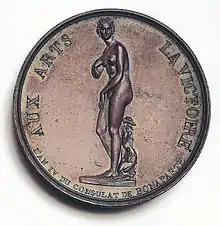 Jeuffroy returned to Paris and was appointed a member of the Institut de France in 1803.[5] He created a commemorative medal for Napoleon entitled "The Treaty of Amiens Broken by England, May 1803".[6] Jeuffroy was made a Knight of the Legion of Honour.[7] In 1805 Napoleon founded a school of gemstone engraving, headed by Jeuffroy.[8] The school was established in the deaf-mute institution.[9] In 1816 Jeuffroy was made a member of the Académie des Beaux-Arts in the engraving section.[4]