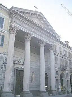 During the French occupation,[3] religious orders were dissolved or expelled, and convents and monasteries closed and confiscated by the government. In Cuneo this included two monasteries and the convent of the Capuchins. The monastery of S. Annunziata became a hospice for the poor and an orphanage, and the monastery of the Terziarie became first a prison and then a warehouse for salt and a military barracks.[4]