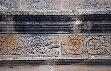 On the walls and columns of the facade, of Tuscan order, stood the entablature decorated outside. This entablature had in its front an inscription, now lost, made of bronze letters nailed. Of these disappeared letters have remained only the signs of its existence in the stone. On the sides and rear, are reliefs with floral motifs and garlands.