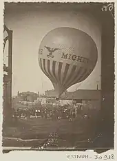 The first flight of Romanian military personnel happened on 2 July [O.S. 20 June] 1874, when Marius Willemot, a French engineer from Bucharest, took Majors (Maj.) Iacob Lahovary, Constantin Poenaru and Dumitrescu in flight over the city with his hydrogen balloon named "Mihai Bravul" (Michel-le-Brave). The last flight of this balloon took place on 19 [O.S. 7 July] 1874, Willemot flying together with Colonel (Col.) Nicolae Haralambie, Ion Ghica and a third person.[5]