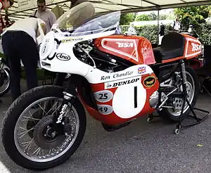 A Thames Lighterman by trade,[2] Chandler was sponsored during his early career from 1962 by entrant Tom Kirby a motorcycle dealer with premises at Roneo Corner, Hornchurch, Essex.[3] Breaking his ties to Tom Kirby in 1964, Chandler was then sponsored by Reg Kirby, Tom's brother and a motorcycle dealer from Stanford-le-Hope, Essex, whose bikes were prepared by Colin Seeley's race shop, Colin Seeley Racing Developments.[2]