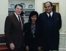 ![]() Ronald Reagan, Tengku Palmer and Ronald Palmer in 1988 | |