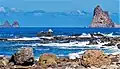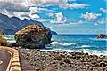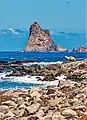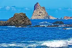 The Roques de Anaga are two monolithic rocks forming some of the most emblematic natural monuments of Tenerife (Canary Islands, Spain). Roque de Tierra stands 179 meters above sea level and is closer to the main island while Roque de Fuera, at 66 meters above sea level, is farther away. Both rocks are also included in the European Union's Natura 2000 ecological network of protected areas. They are located off the north-east coast of Tenerife.