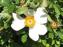Rosa bracteata, commonly known as the Macartney rose, is a species of rose that is native to southern China and Taiwan, but is also present as an invasive in the US.