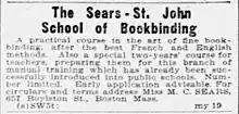 Ad for The Sears - St. John School of Bookbinding in Boston, 1906