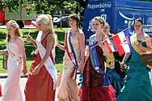 Rose Queen (or Apple Queen,[1] Cotton Queen[2] or Harvest Queen) is a local or regional tradition associated with Whitsun processions[3] or June[4] festivals and fêtes similar to May Queen. Annual civic honorific titles are bestowed by local election to particular individuals, typically local young women.