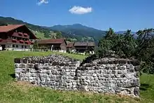 Rosenberg Castle is the westernmost of three ruined castles in Giswil. Traditionally thought to be part of a defensive line due to their proximity and that they lay in a straight line, they are now generally believed to be three separate castles built for different purposes.[1] The easternmost, Rudenz Castle was built by the Knights of Rudenz in the early 13th century. It lies about 2 km (1.2 mi) from Rosenberg. The center castle, Hunwil Castle was completely demolished to provide stone for the parish church which was dedicated in 1635.[2]