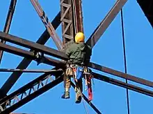 The bridge was rebuilt by the King Bridge Company between 1895 and 1896, remaining in use most of the time;[21] the trestle is the only railroad bridge featured in the King Bridge Company catalogs of the 1880s and 1890s that remains standing.[22] The renovation converted the bridge's structure from iron and wood to steel to allay public concerns about its strength;[3] the height of the bridge evoked collapses such as the Tay Bridge disaster.[16] The steel was provided by the Carnegie Steel Company.[21] The renovation raised the bridge's piers by 8 feet (2.4 m)[23] and made the bridge straighter; the original design had a curve on its southern end.[24] One of the northern spans was completed by February, 1896,[25] and the entire reconstruction was finished by June.[26] The layout of the spans was unchanged from the original 1872 design.[3] Following its reconstruction, the bridge was unaffected by the shock of a large cave-in at a nearby Rosendale cement quarry on December 26, 1899,[27] though it was shaken by a nearby boiler explosion that occurred days before the collapse.[28]