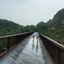 In late June 2012, contractors began welding new railings to the trestle and conducting other preparatory work for opening the walkway.[64] An event at nearby Willow Kiln Park was held on June 29, 2013, to celebrate the grand-opening of the trestle to the public.[65] The trestle was fully re-opened to the public for the first time since the rail line closed,[66] and a 24-mile-long (39 km) segment of the Wallkill Valley Rail Trail from Gardiner to Kingston was opened.[67]