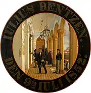 A target from Roskilde Shooting Society, depicting a scene from the loggia