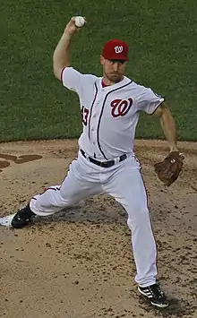 On January 10, 2013, Ohlendorf signed a minor league contract with the Washington Nationals.[40] On July 26, 2013, he started against the New York Mets in the second game of a day/night double header. Ohlendorf enjoyed a successful 2013 season, recording 4 wins and a 3.28 ERA in 16 appearances. After the season, Ohlendorf signed a one-year deal to return to Washington, avoiding arbitration.[41]